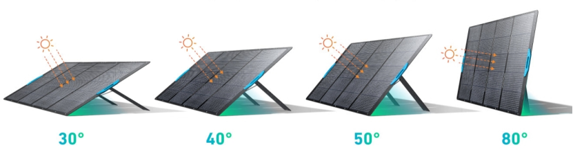 One of the reasons folding solar panels perform efficiently outdoors is their adjustable design. Many models feature built-in stands that allow users to tilt the panel at different angles, like 30°, 40°, 50°, or 80°. This flexibility helps align the panel with the sun’s position, significantly improving power output. Compared to flat or fixed panels, adjustable folding panels can generate noticeably more energy over the course of a day, directly improving charging efficiency.
