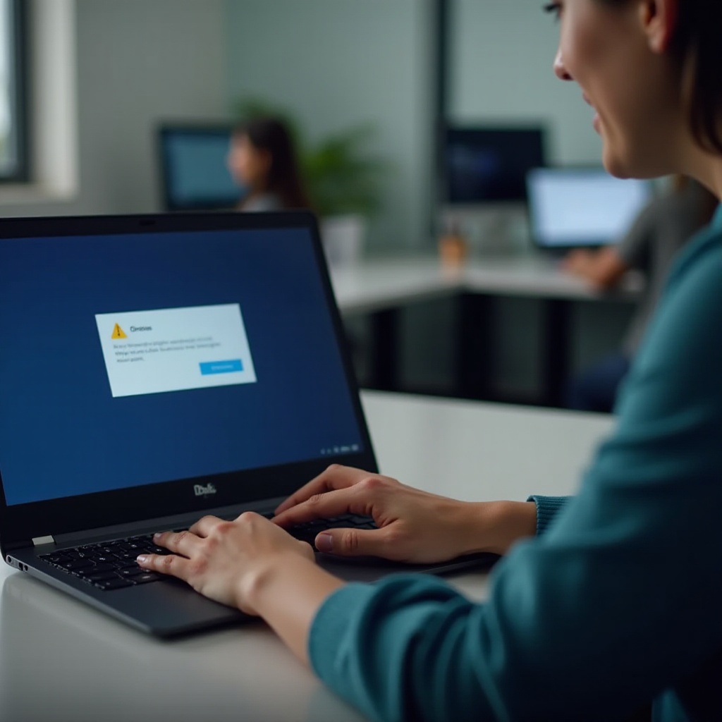 Restartování vašeho Dell Chromebooku: Restartování zařízení může často vyřešit drobné problémy. Stiskněte tlačítko napájení pro vypnutí a poté znovu pro restart.